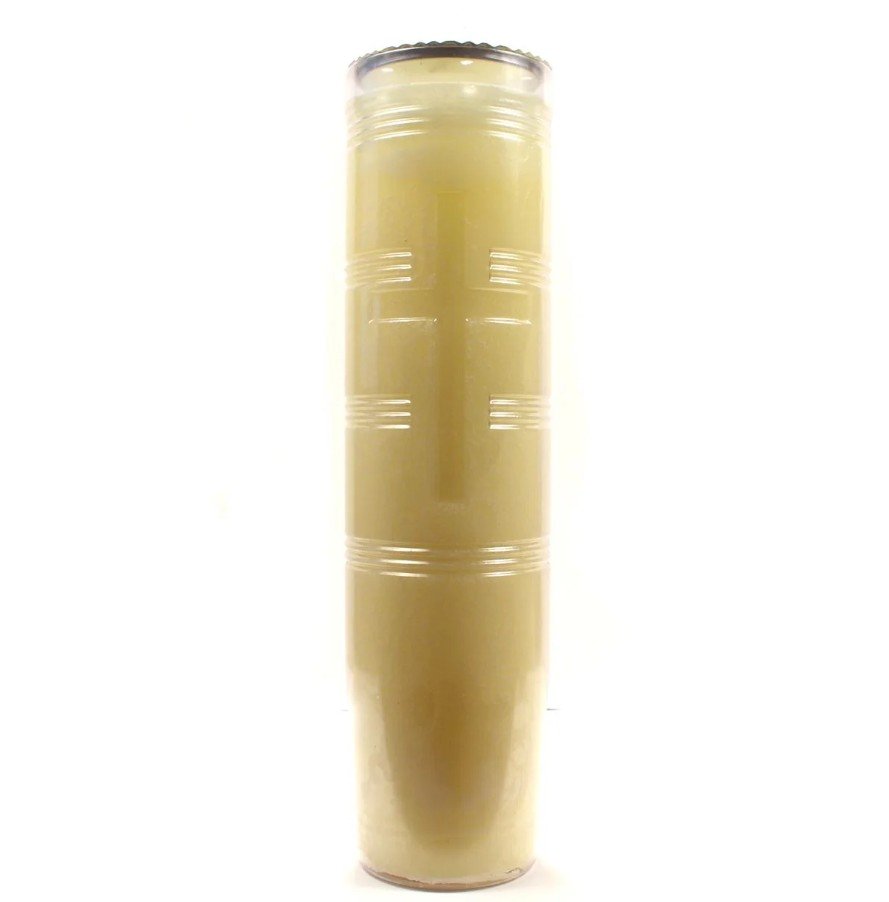 * 9 Candles per Carton * 51% Beeswax * 14-Day Sanctuary Light in Plastic Container with an embossed cross